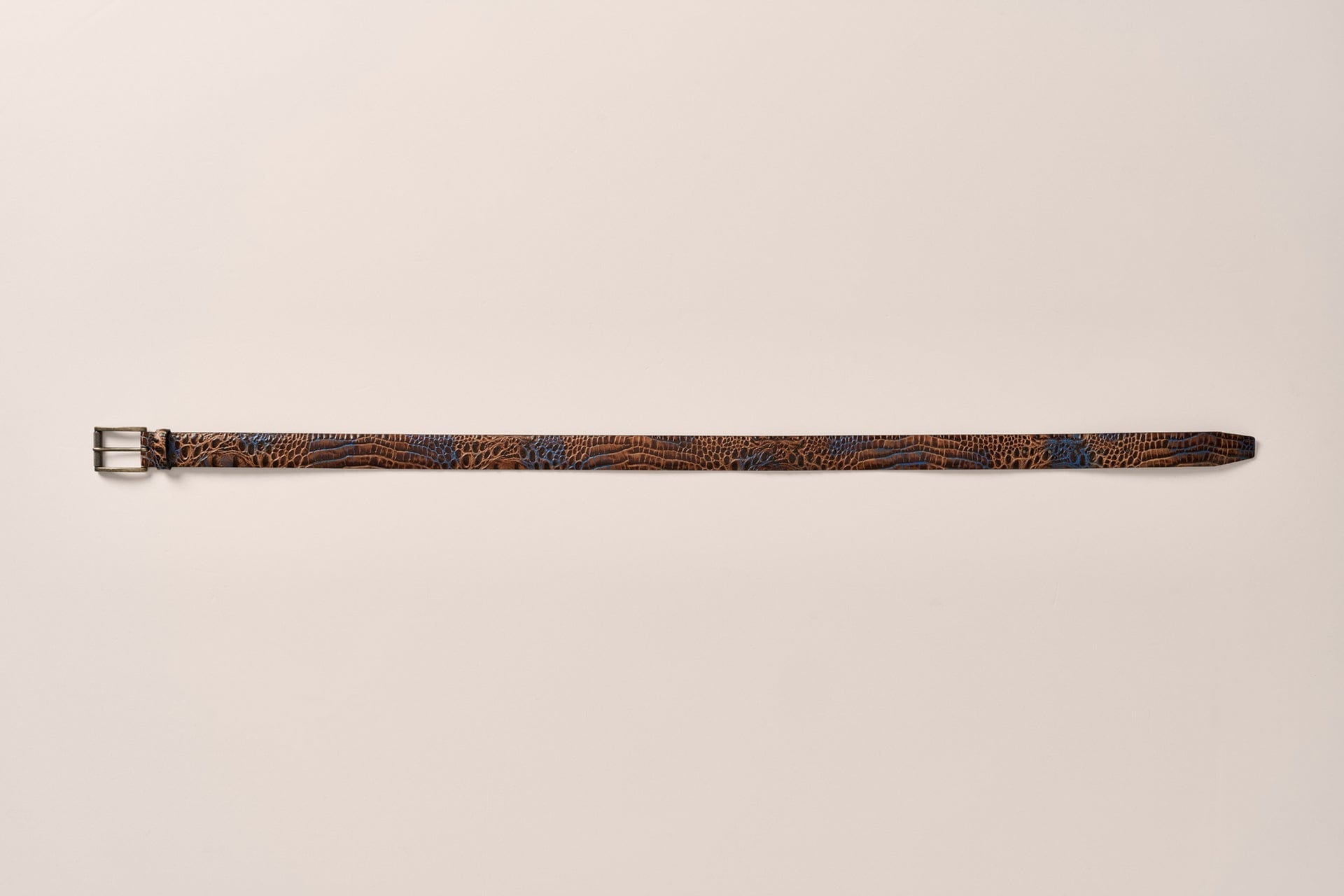 Our unique take on the crocodile belt. The Crocco Belt is made with premium Italian leather and is hand-burnished for a smooth, embossed look.