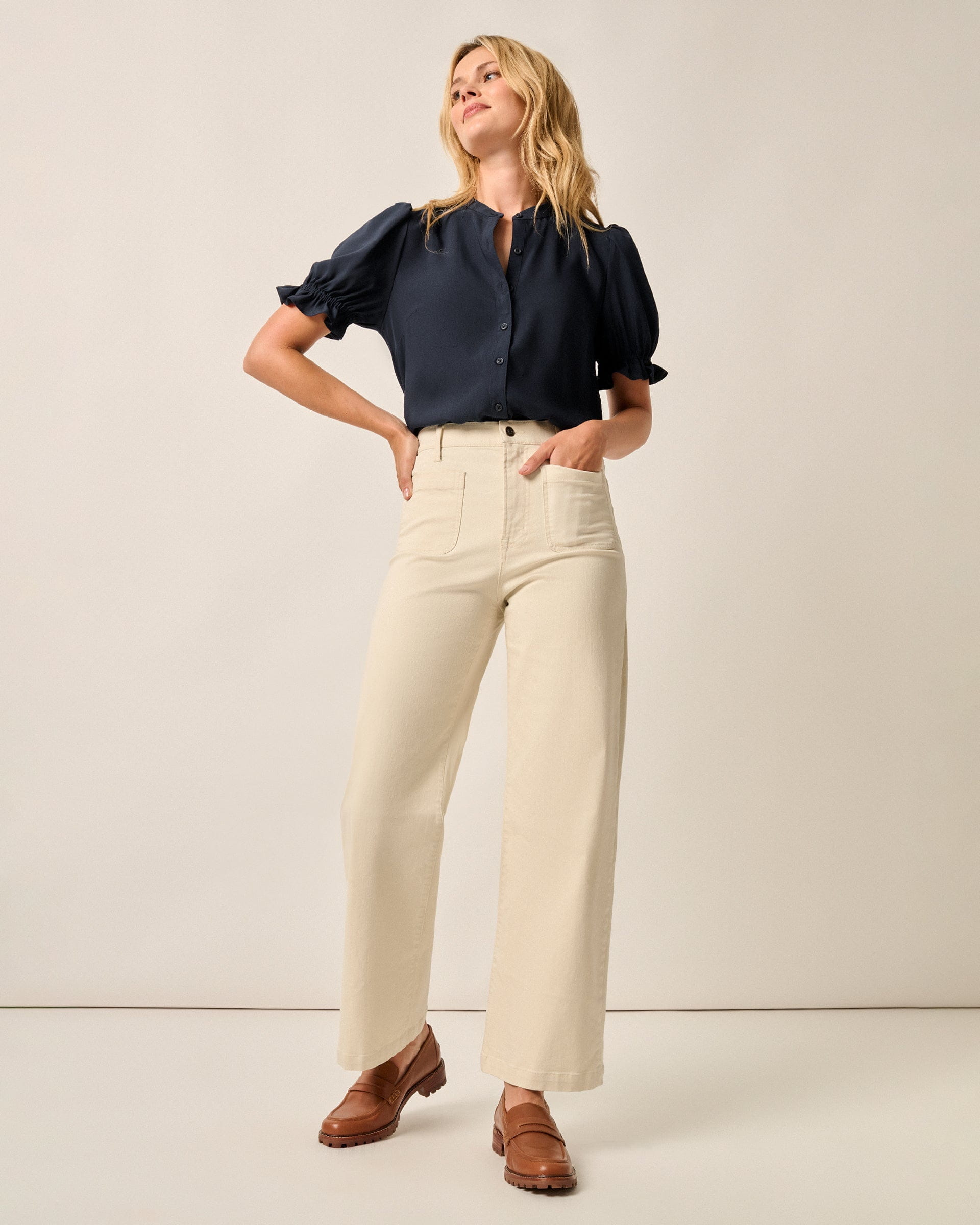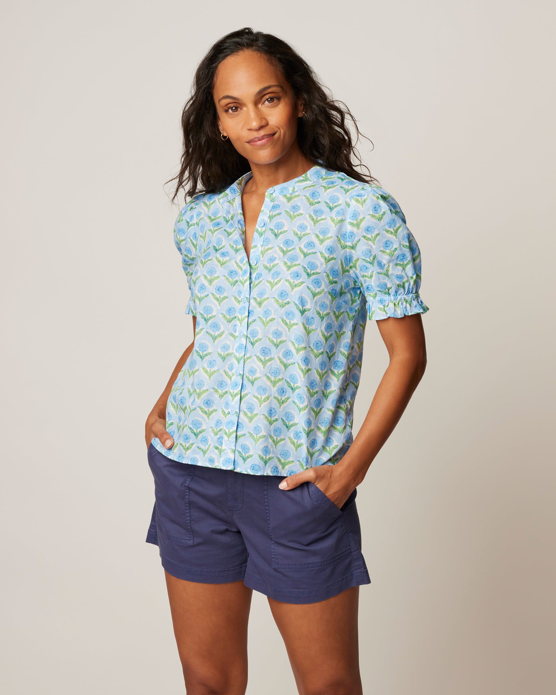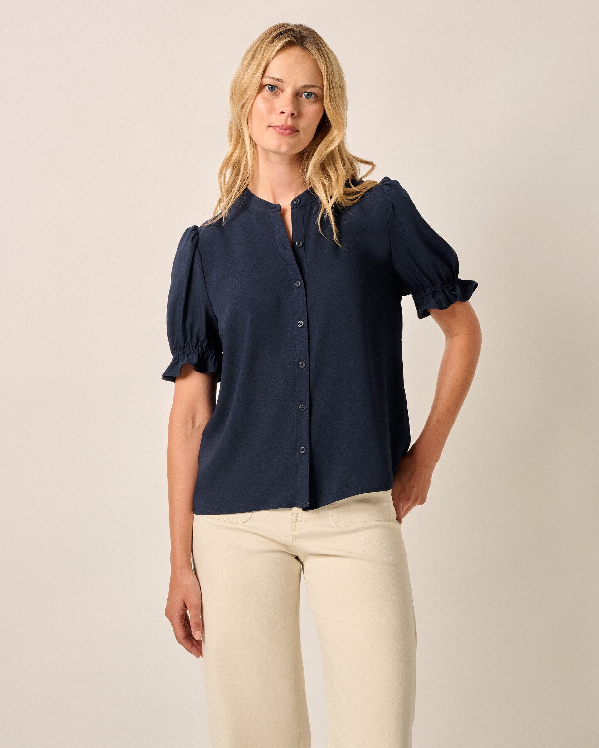 Add a little romance to your day with this versatile blouse, tailored with just-puffed-enough sleeves that pairs perfectly with jeans or cargo pants and a cardigan.